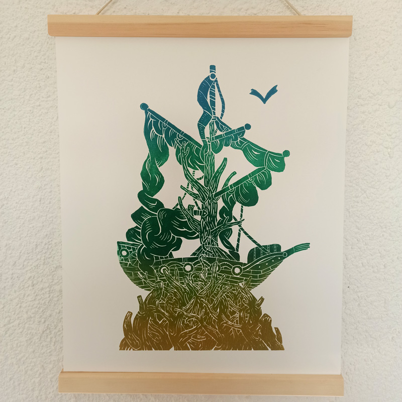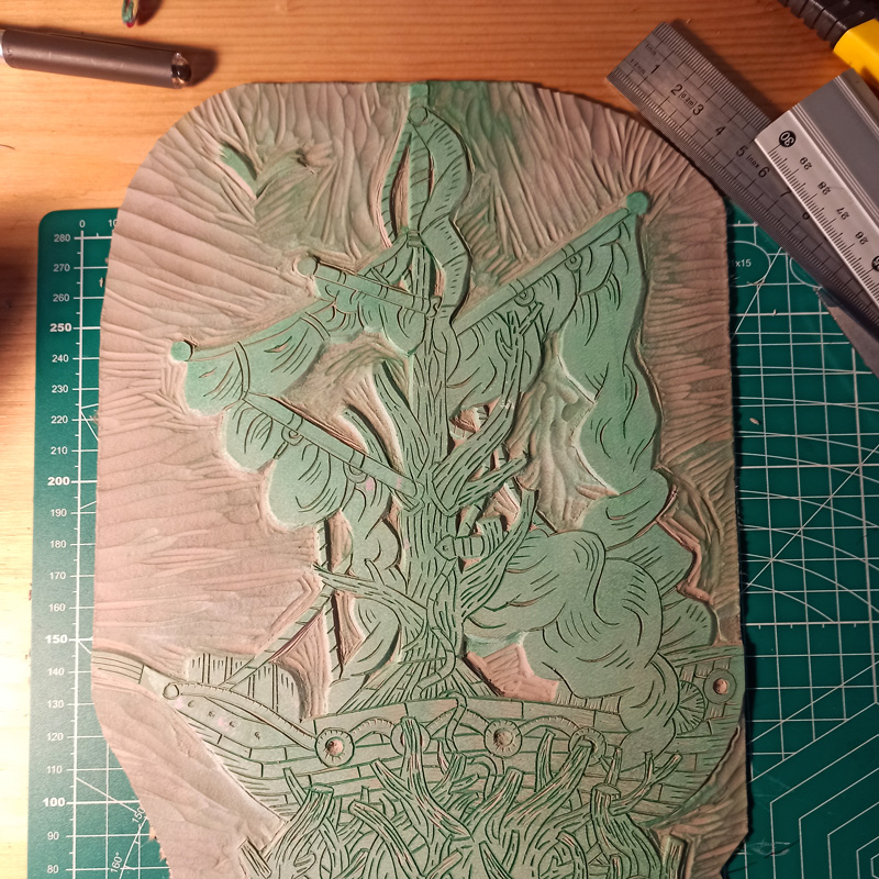 Estampe d’une matrice en linogravure imprimée en mars 2026
